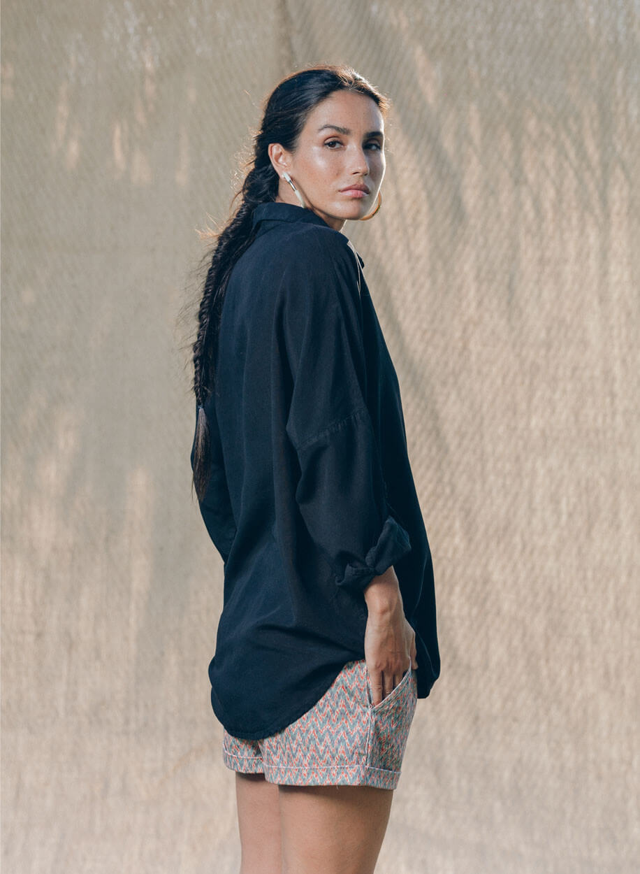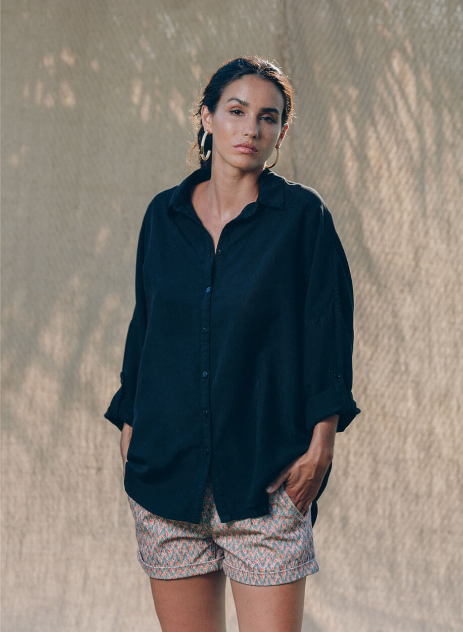 La chemise AMANA est composée d’un mélange de 83% de lyocell et 17% de lin.