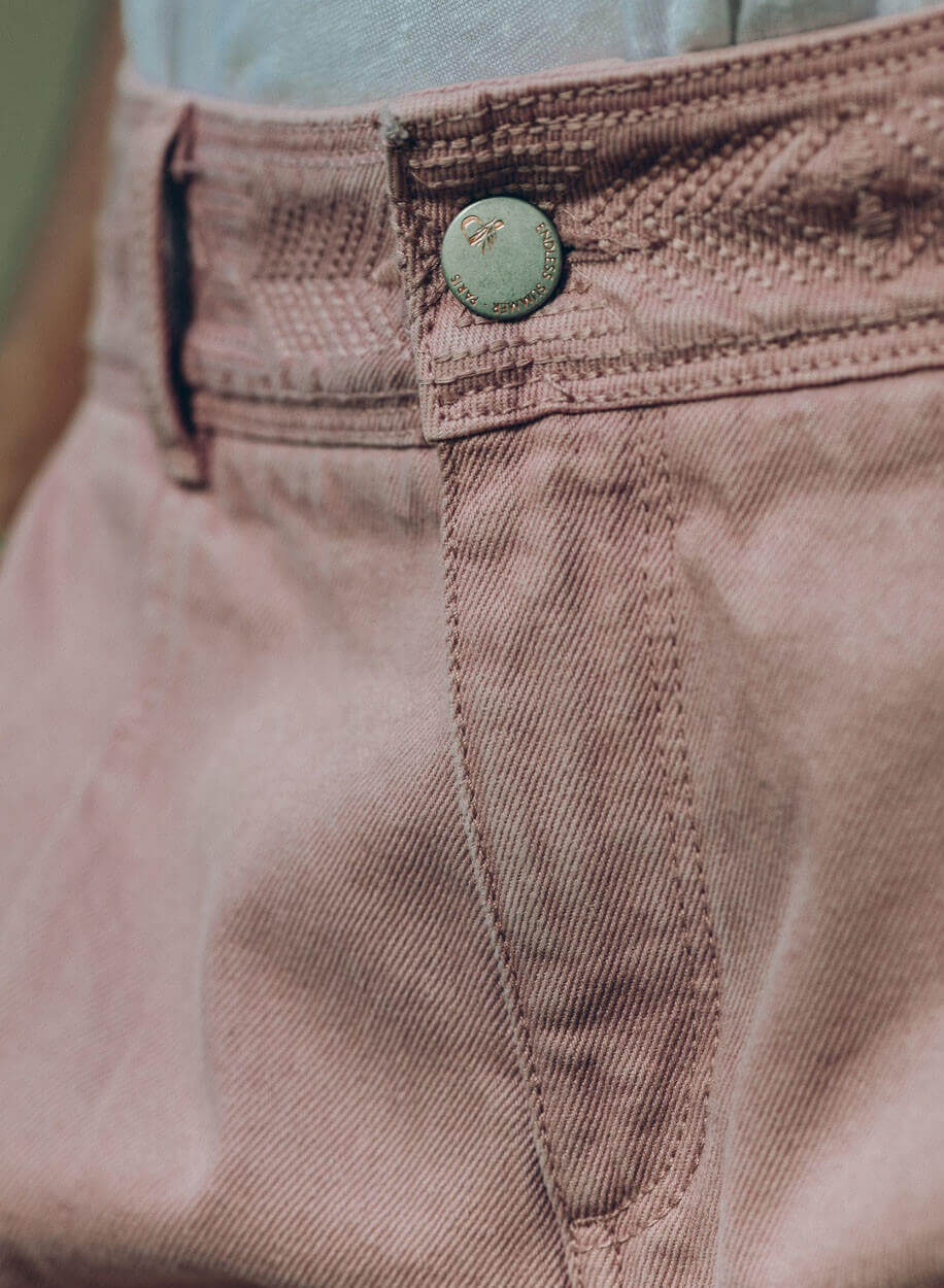 - Poches jean devant et plaquées dos avec doubles surpiqures