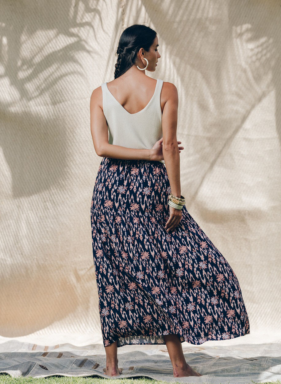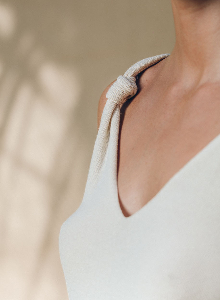 Le top PALOMA est composé d’un mélange de 75% de viscose, de 12% de lin et de 13% de polyamide.