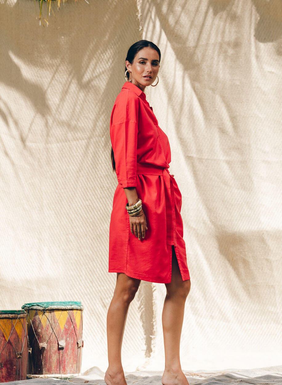 La robe WANITA est composée d’un mélange de 83% de lyocell et 17% de lin.