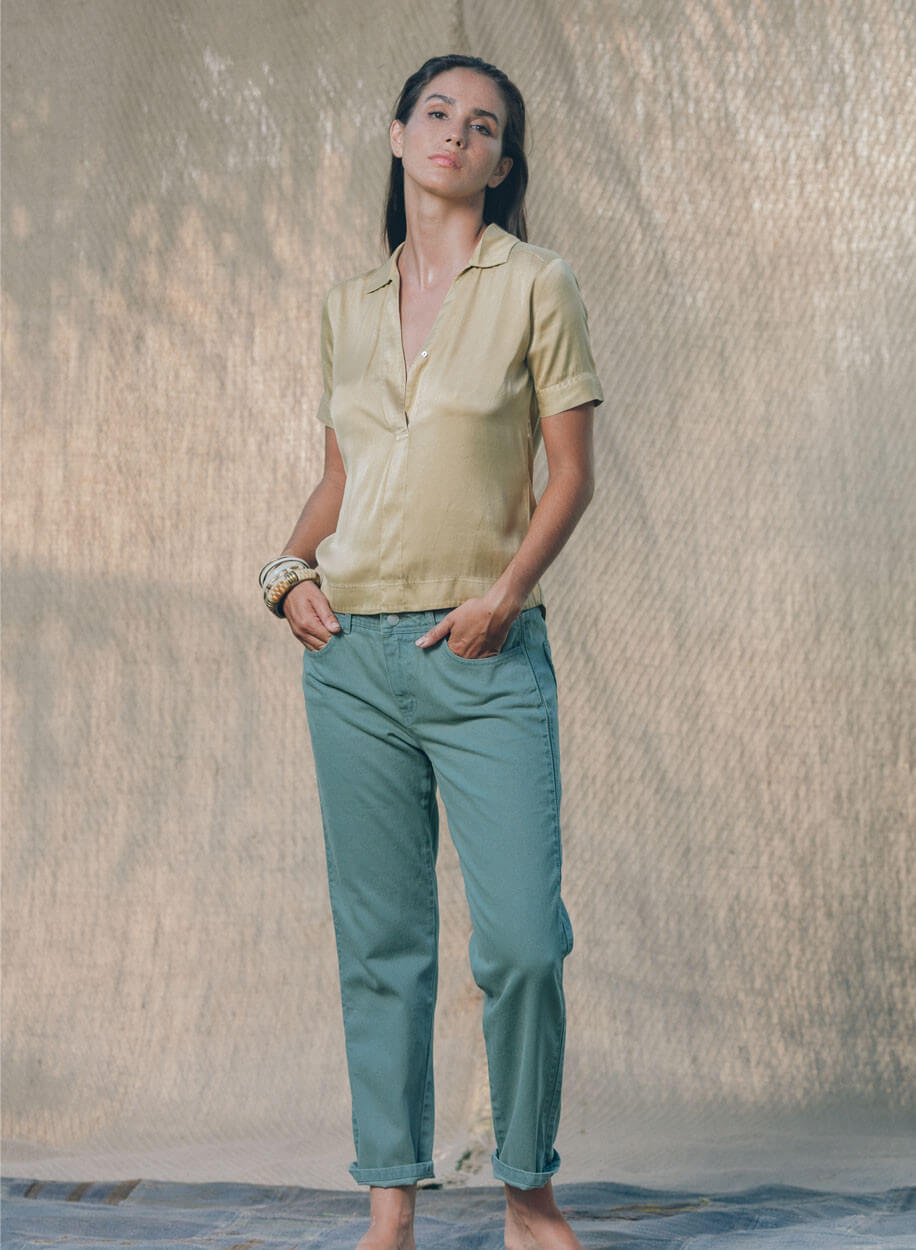 Cette pièce délicate requiert une attention particulière. Pour préserver plus longtemps vos vêtements, nous vous conseillons de les laver et de les repasser sur l’envers et de privilégier un séchage à l’air libre.