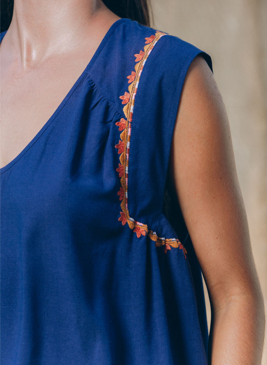 - Broderie autour de l'emmanchure et sur le bas devant et dos