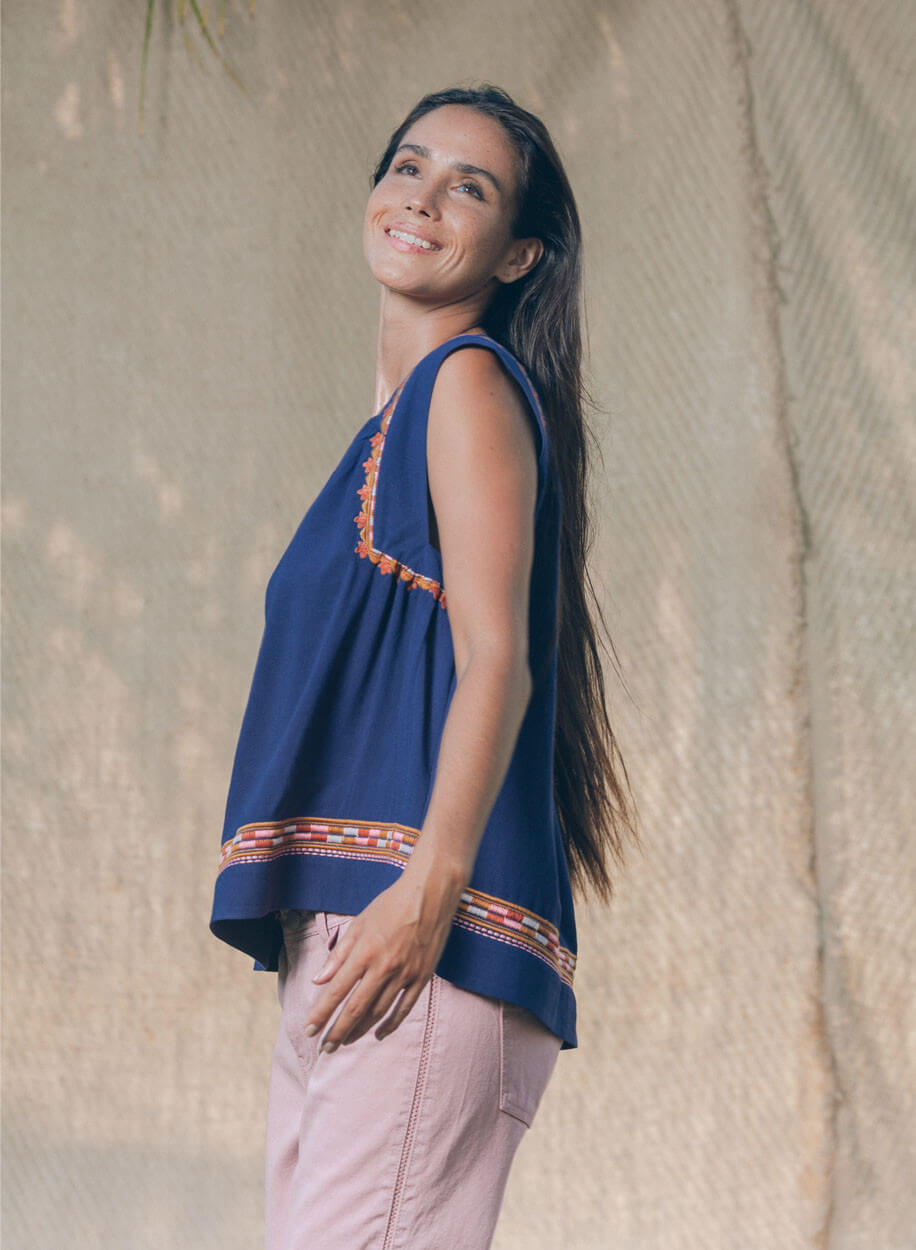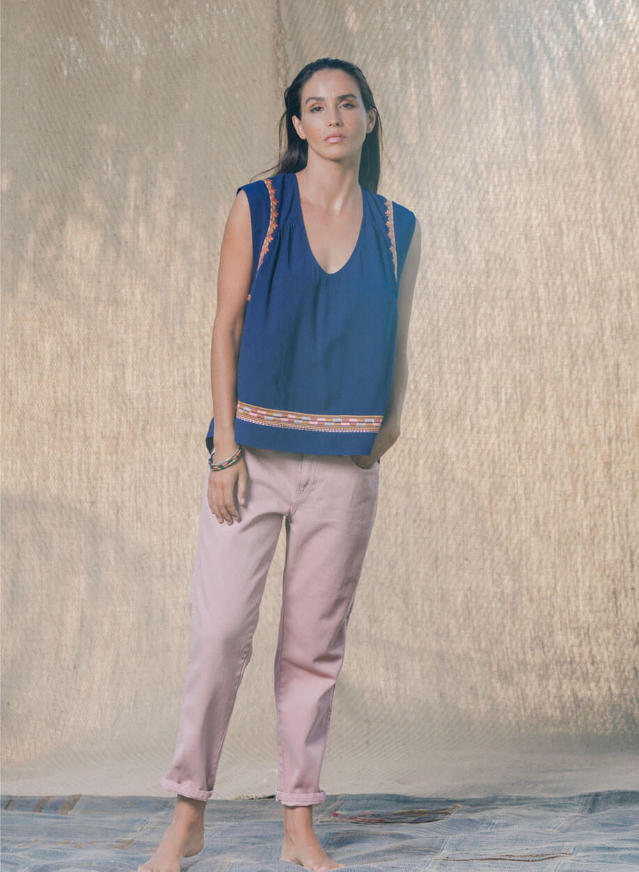 Le top APA est composé d’un mélange de 85% de viscose et 15% de lin.