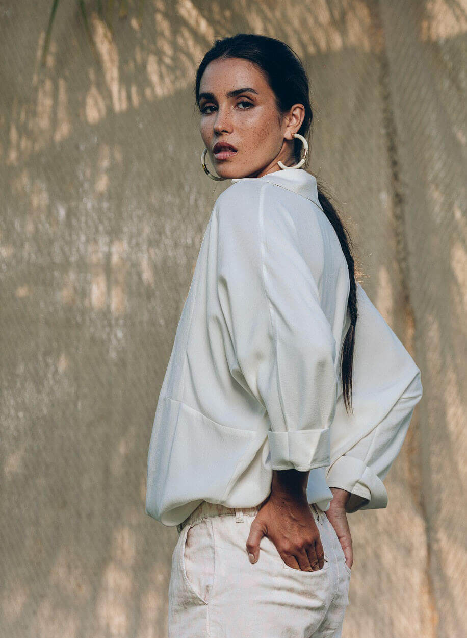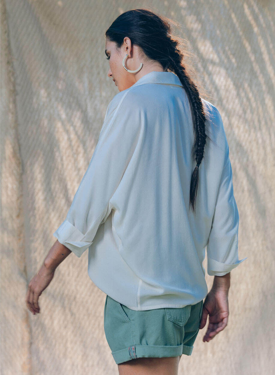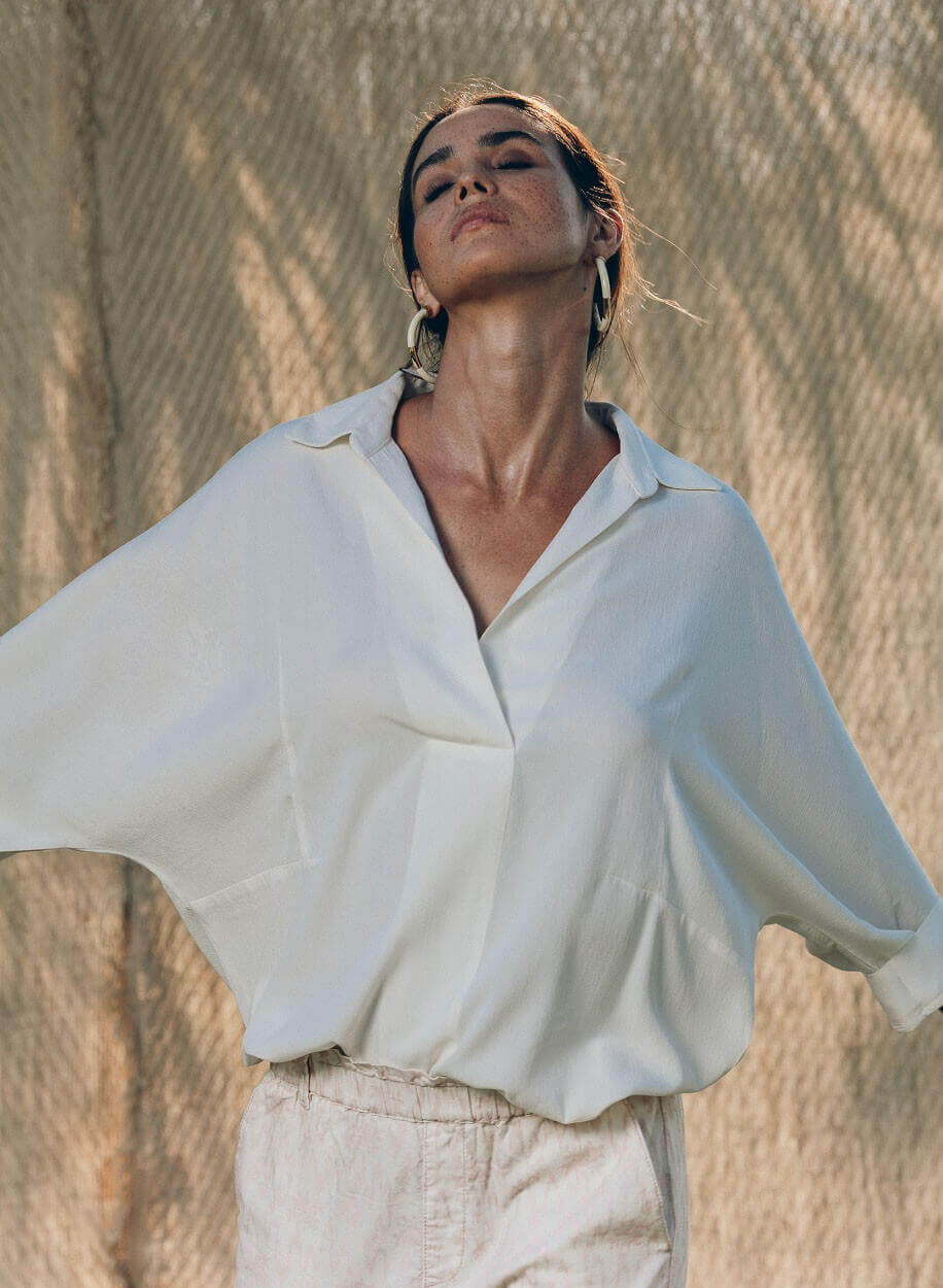 La blouse FARA est composée d’un mélange de 65% de lyocell et 35% de Viscose.